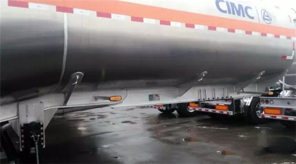 前段使用鋁合金加高大梁,避免管道與牽引車干涉;中部使用鋁合金折彎大梁,承接罐體變截面部分的載荷過度;尾部高強(qiáng)鋼縱梁與BPW反裝空懸相結(jié)合,既保證了車架的強(qiáng)度,又降低了罐體的重心,同時(shí)方便罐底管道的排布,可謂匠心之作!