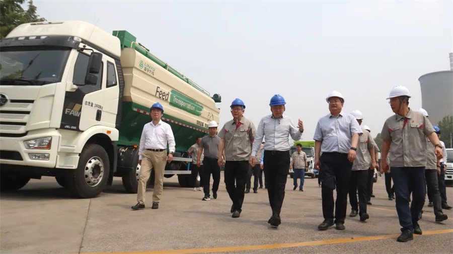 在展車區(qū),李貴平一行重點(diǎn)了解了凌宇系列新產(chǎn)品:新能源攪拌車、特種粉罐車、飼料車、畜禽車、環(huán)衛(wèi)車輛及設(shè)備。