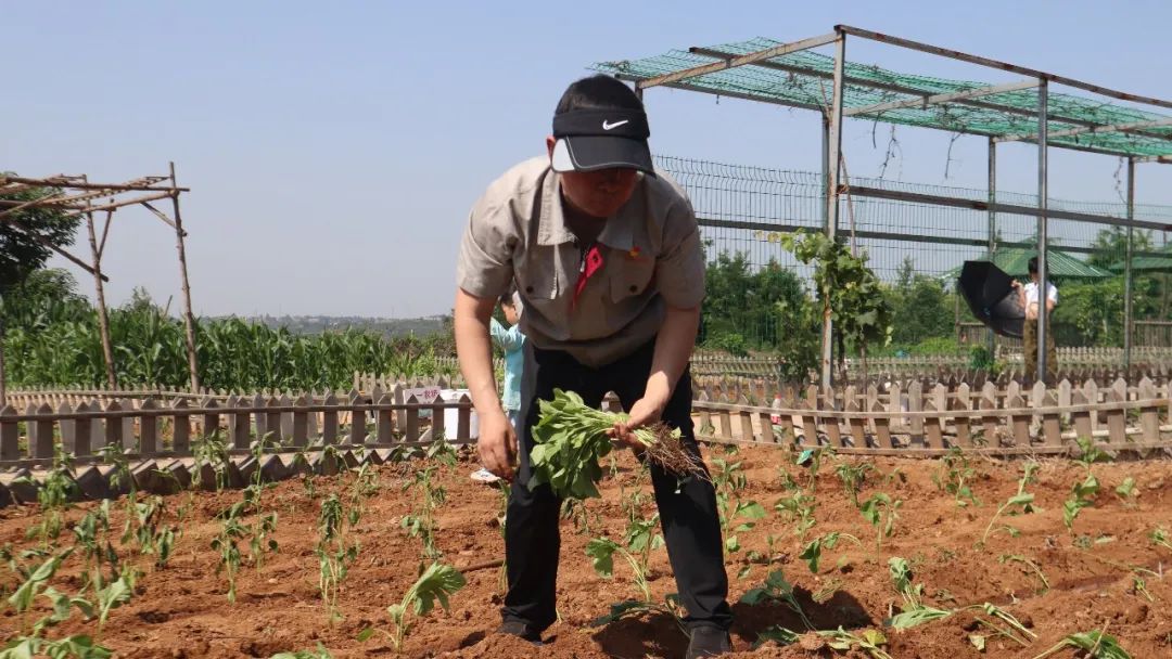 同志們分工協(xié)作,在有經(jīng)驗(yàn)的老同志指導(dǎo)和示范下,依次開(kāi)展松土、起壟、插秧、澆水、培土等工作。汗水滴灑在泥土里,歡聲笑語(yǔ)回蕩在空氣中?;顒?dòng)中,還有不少黨員帶著孩子來(lái)到現(xiàn)場(chǎng),讓祖國(guó)的下一代在了解種菜過(guò)程的同時(shí),體驗(yàn)勞動(dòng)果實(shí)的來(lái)之不易。